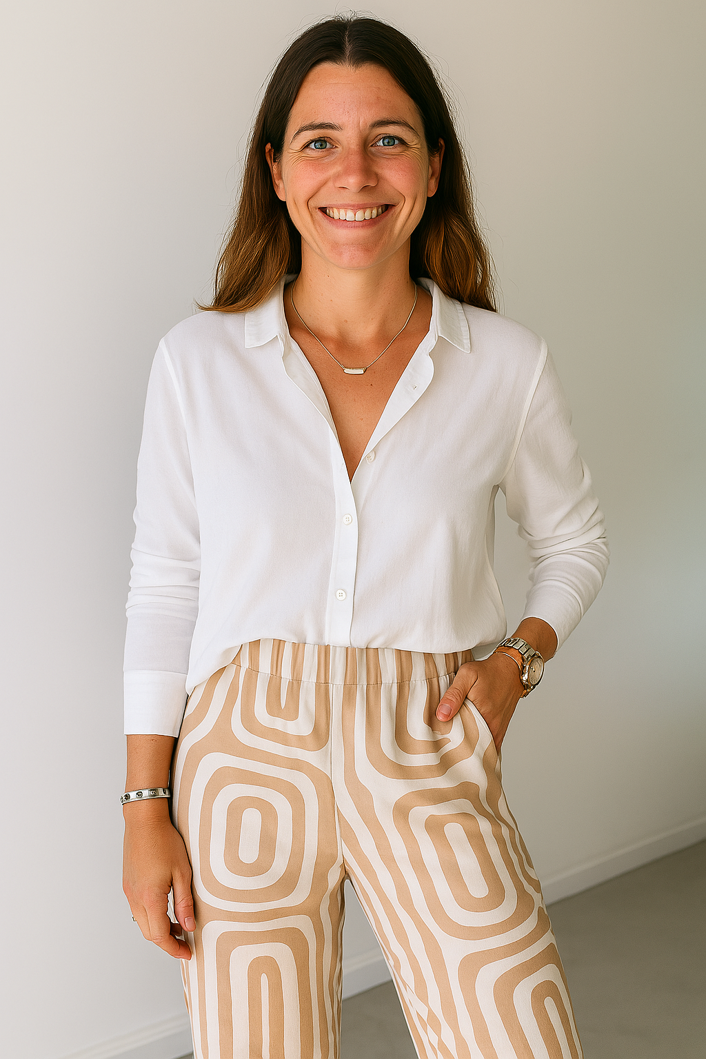 “This blouse feels so soft and light, and the fit is just right — relaxed but still flattering. I love the rich colors, they make me feel polished even when I’m just having coffee at home. It’s quickly become one of my favorites.”