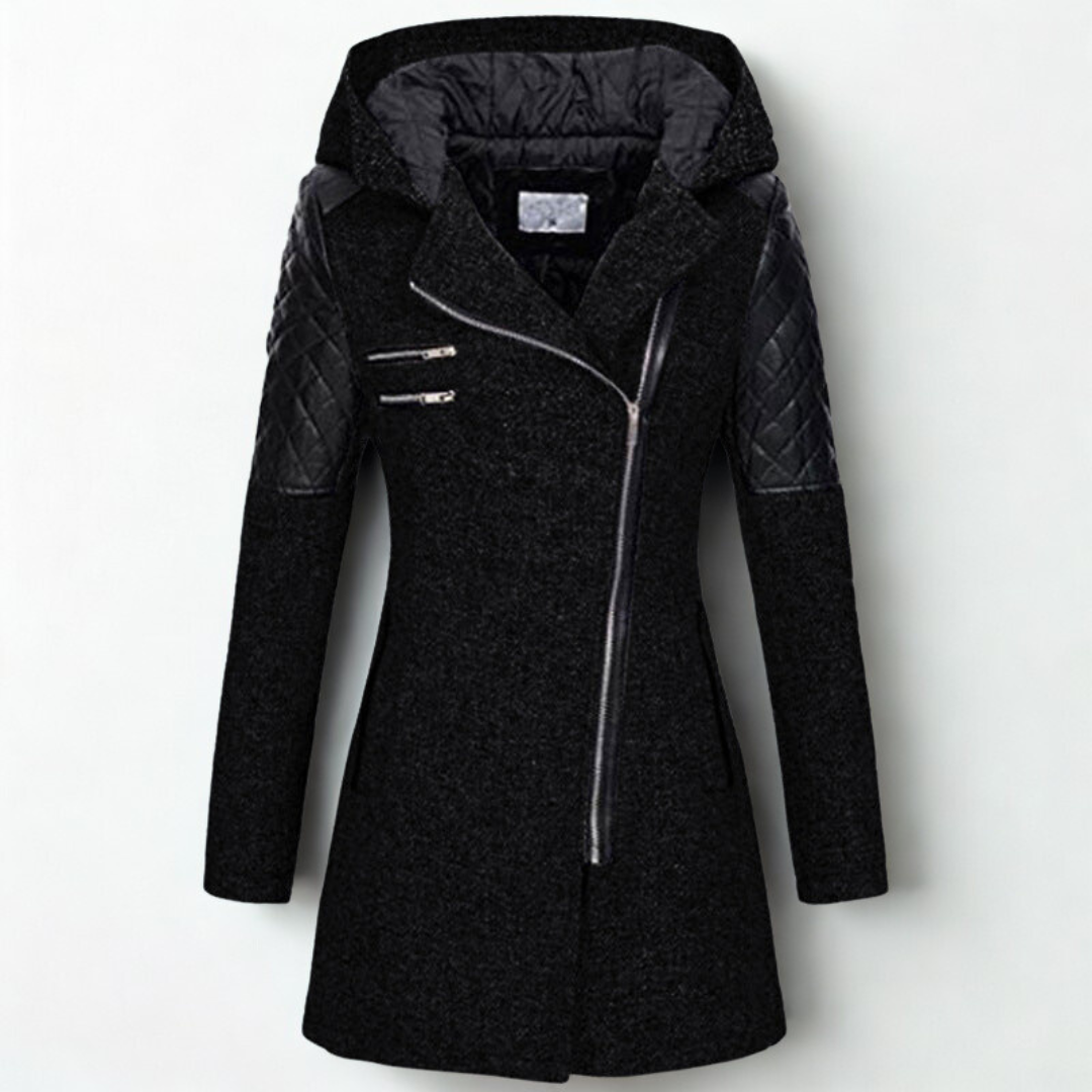 Meet Khloe | Quilted Sleeve Coat — where style meets warmth. Crafted from a soft wool blend with quilted faux leather sleeves, this timeless coat gives your wardrobe an instant edge. Its tailored fit and faux fur lining keep you cozy while adding a modern, confident look that feels both refined and easy to wear. Perfect for city days or evening strolls — handpicked for women who love effortless sophistication.